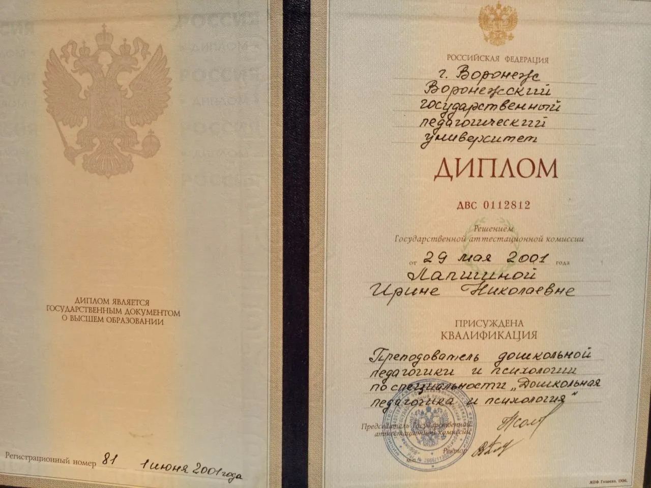 ВГПУ, психолого-педагогический факультет, 2004 г., очное обучение (специалитет)